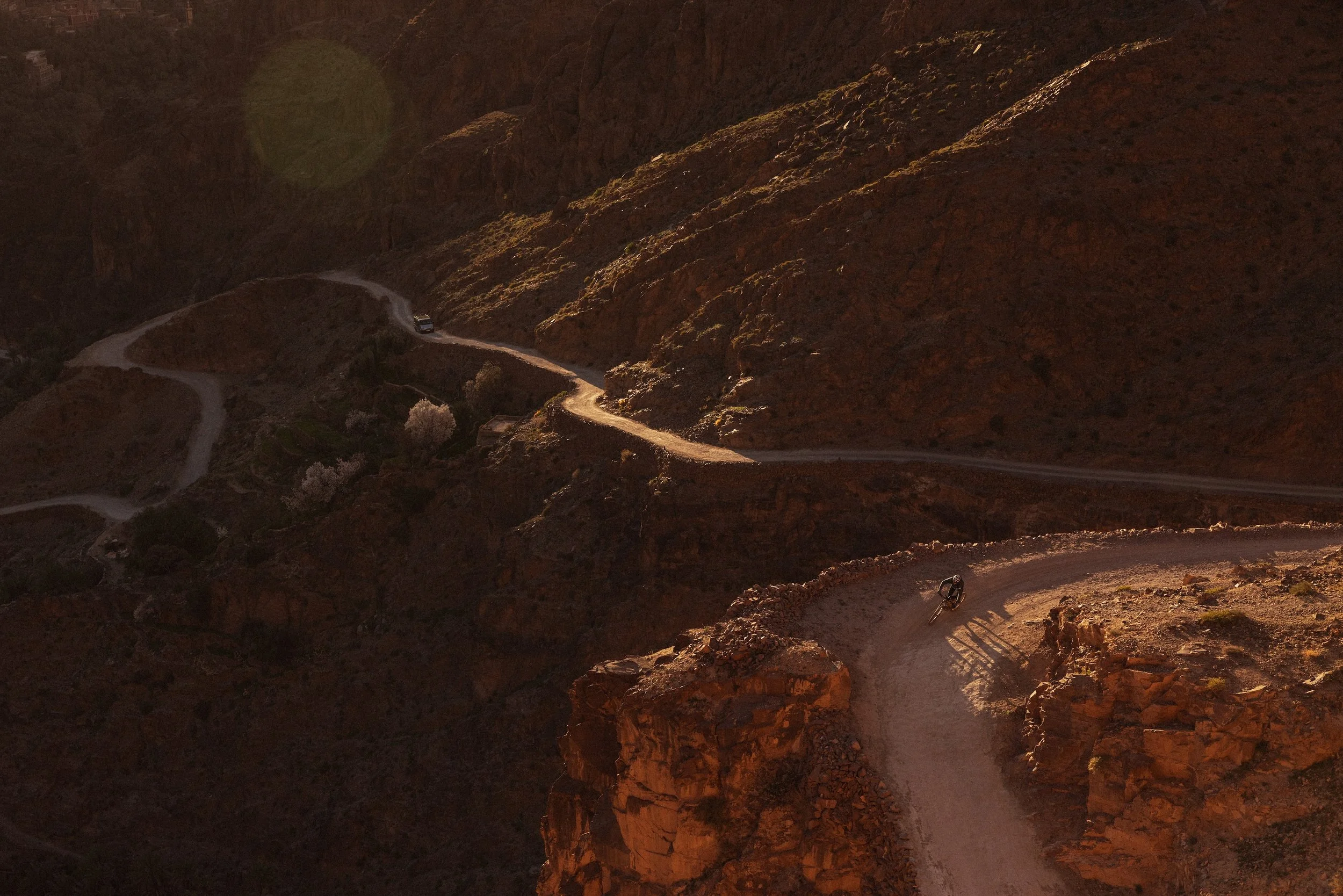 From the start in Beni-Mellal, riders head straight into the mountains. The first major resupply comes in Tabant at 180 km, after which the route climbs Tizi N’Aït Imi—the highest pass we’ve ever included in AMR at 2,910m—before dropping into the narrow, winding gorge of M’Goun. Conditions depending, riders will follow a mule trail through the river itself, with a diversion in place if needed due to weather conditions.